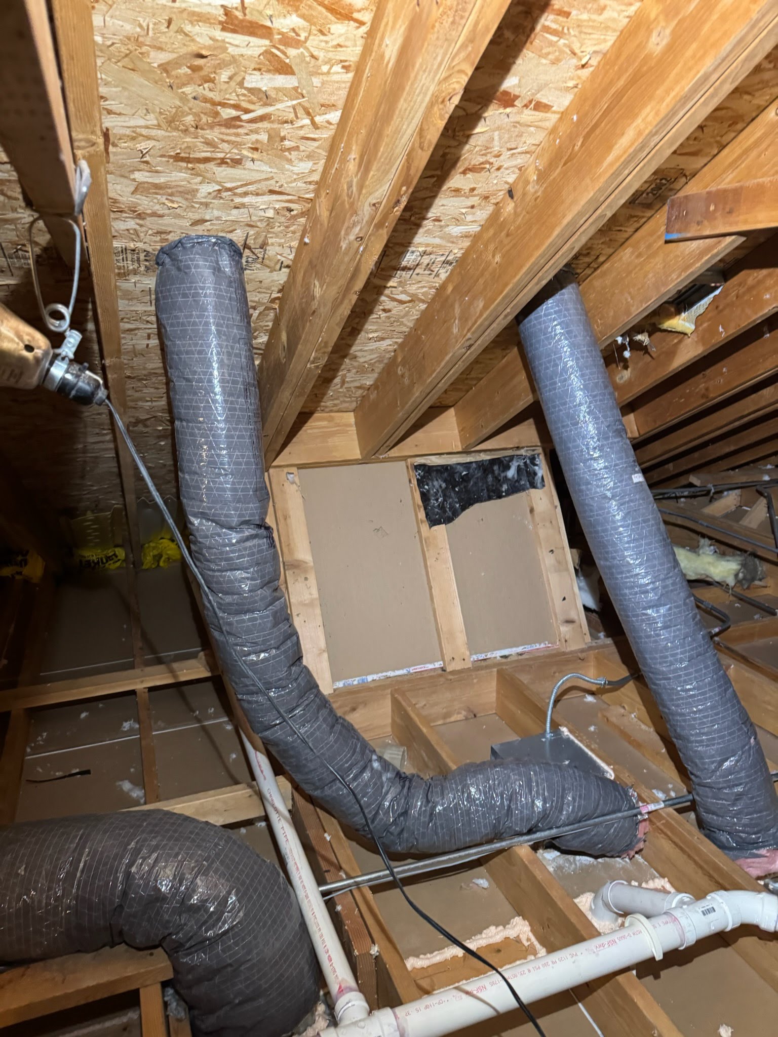 Installation of bathroom ventilation systems designed to exhaust moisture, prevent mold growth, and improve overall indoor air quality.